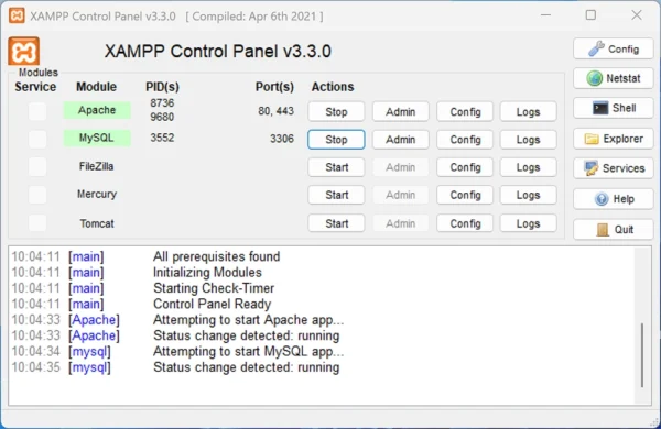 3. Sau khi cài đặt XAMPP, mở XAMPP Control Panel chạy Apache và MySQL (máy chủ host và cơ sở dữ liệu) ▶️