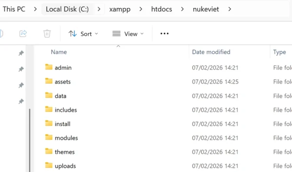 4. Giải nén thư mục nukeviet đã tải về, copy vào thư mục C:/xampp/htdocs/ 📁