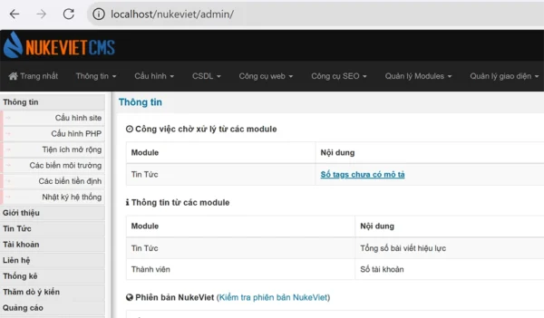 Truy cập trang quản trị tại: localhost/nukeviet/admin